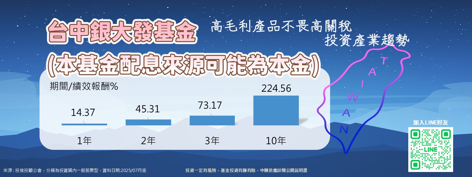 台中銀投信系列 台中銀大發基金A(累積型-新台幣)(本基金配息來源可能為本金) 國內股票型 2025/10/09 84.59