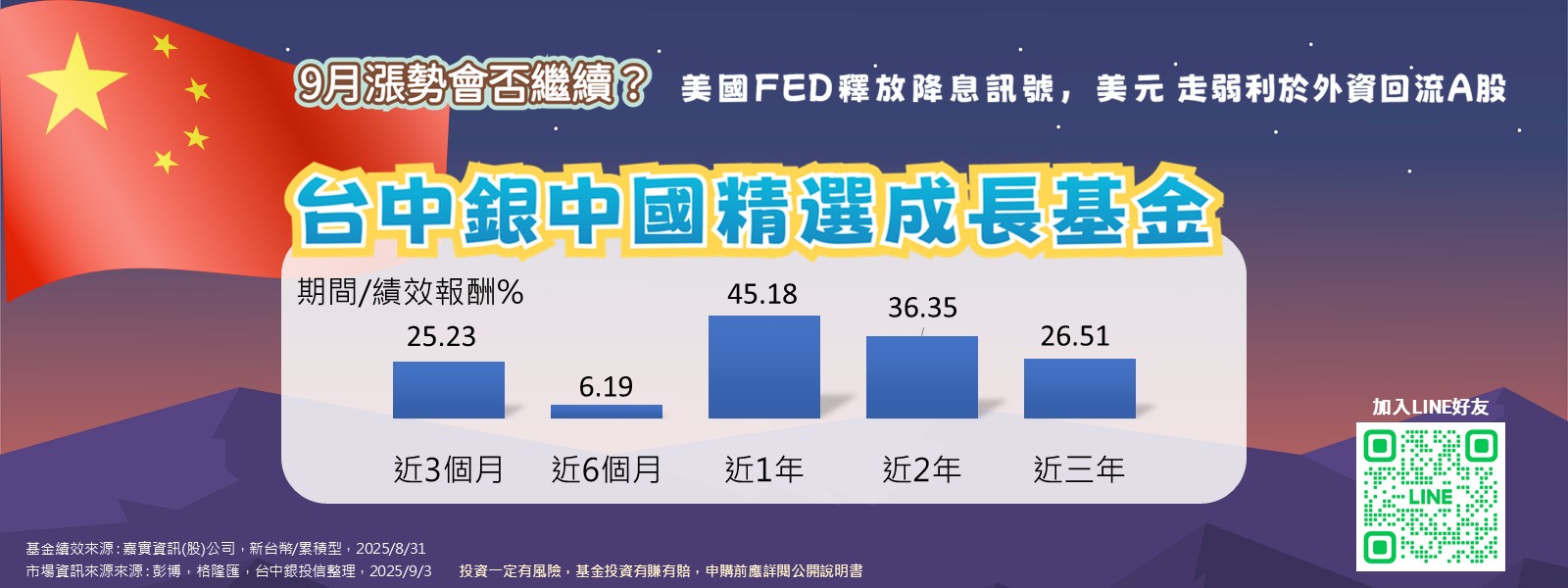 台中銀投信系列 台中銀中國精選成長基金(累積型-新台幣) 海外股票型 2025/09/30 18.40
