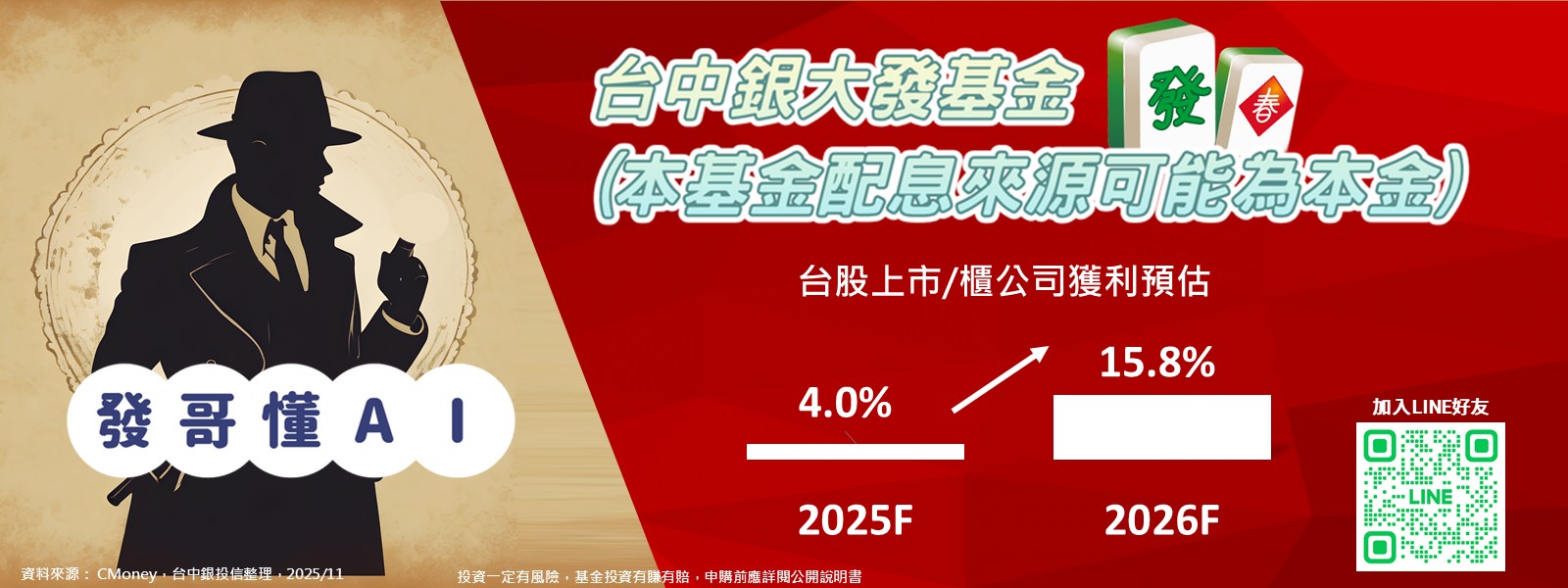 台中銀投信系列 台中銀大發基金B(配息型-新台幣)(本基金配息來源可能為本金) 國內股票型 2026/01/09 12.42