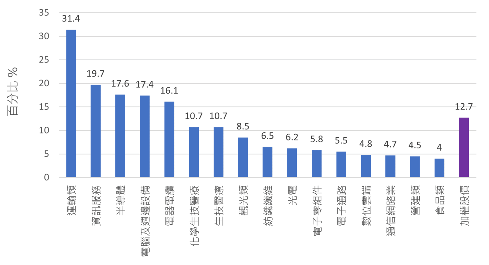 圖. 台灣證交所主要上市產業 營收成長年增率%