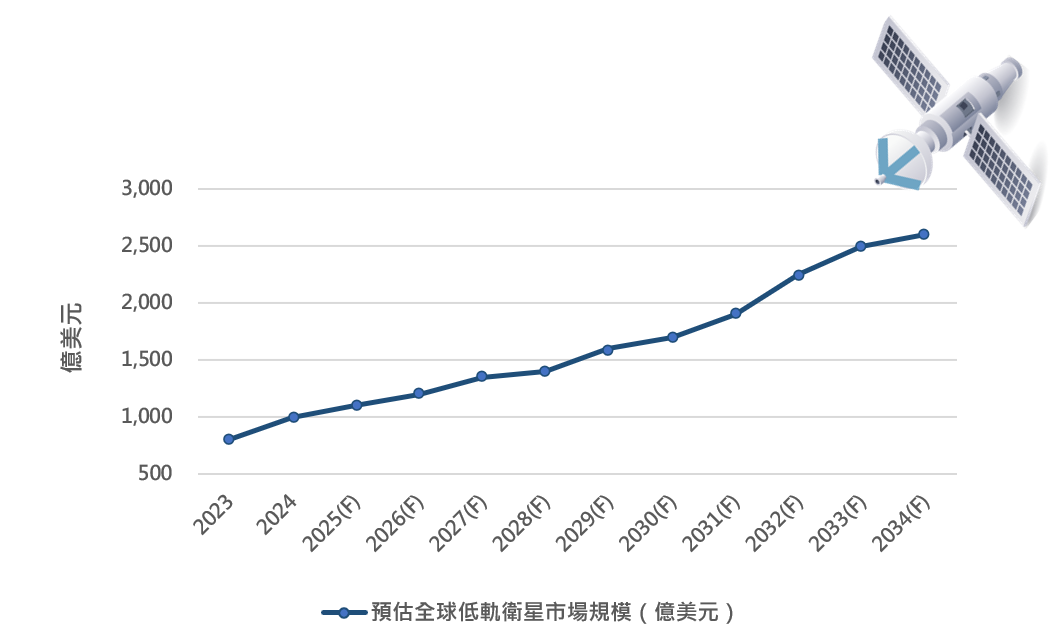 圖. 估未來10年全球低軌衛星市場規模(億美元)一路攀升