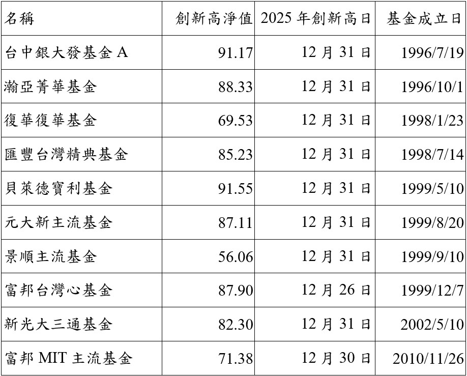資料來源 : 嘉實資訊,依基金成立日期前後排序,統計截至2025/12/31