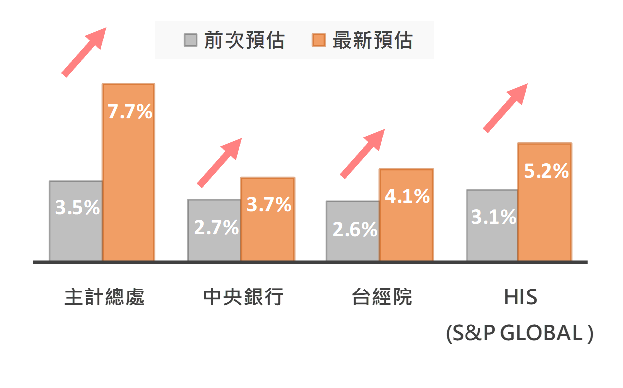 圖. 各大機構上調預估 台灣2026全年GDP% %