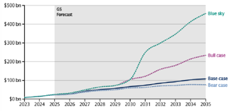 從美國「太空優勢令」到GTC大會釋出低軌衛星將結合AI應用,權威券商預估,衛星市場規模將大幅增長,未來五年內預計將發射7萬顆低地球軌道(LEO)衛星。