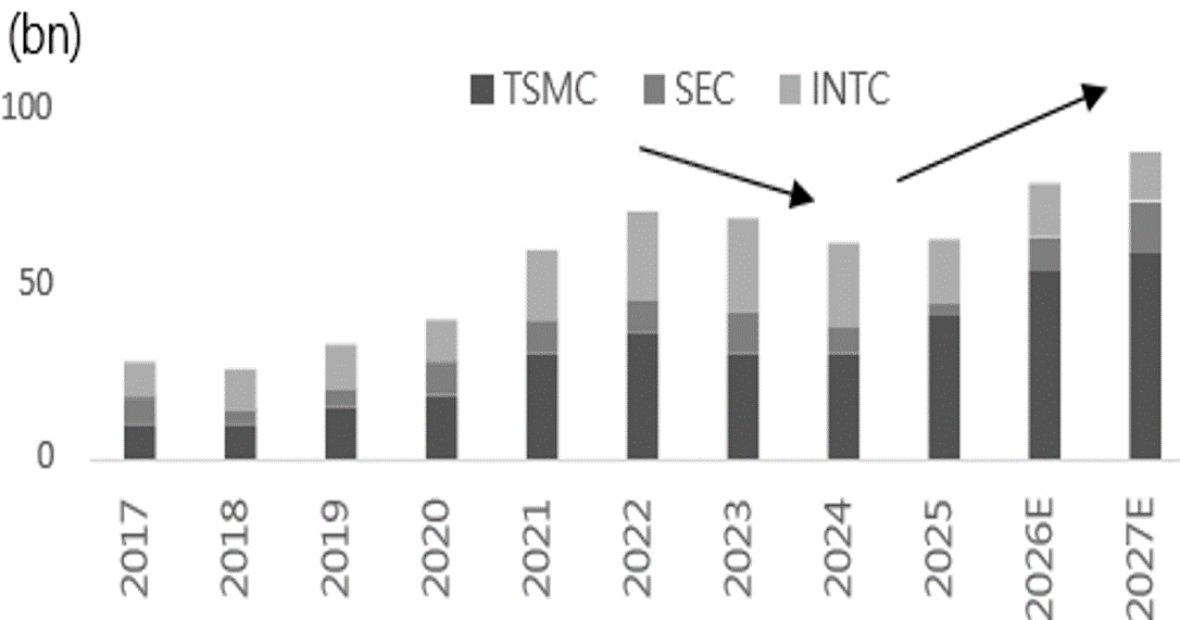 資料來源:SEMI(國際半導體產業協會),台中銀投信整理,2026/4 TSMC(台積電)、SEC(三星、)INTC(英特爾)